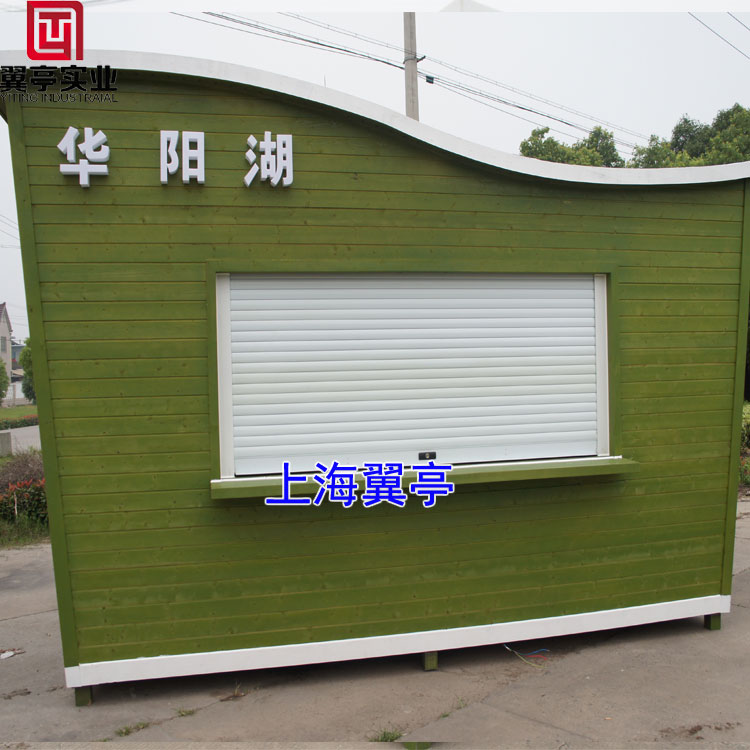 綠色的防腐木售貨亭是很具備個性和特色,木質材料我們都知道它雖然可以循環利用,但是卻很難做好各種各樣精美的造型,因為木條柔韌性肯定不夠的,但是我們的這款木質售貨亭卻很有特色,頂部采用S型頂,不但有個性還很美觀。防腐木外觀顏色也采用的是綠色木油漆。綠色更是清晰淡雅,外墻也有標志性的LED發光字體華陽湖三個大字。