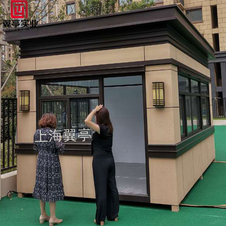 翼亭崗亭廠家推薦:真石漆崗亭尺寸根據客戶實際需求測量,真石漆崗亭外觀大氣、由于需要滿足晚上值班同事的需求,另在崗亭內部設立隔間,用做休息室