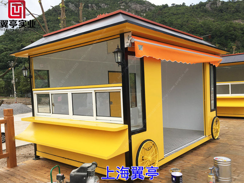 2、尺寸。售貨亭尺寸要選擇合適的,不要只考慮價格,有人會覺得尺寸越大肯定價格越高,這個是毫無疑問的,但是一個售貨亭我們要使用的時間非常的長久,如果一個大尺寸的售貨亭價格多1000元,一個售貨亭使用10年,一年也就多出100元,而尺寸大的售貨亭可以容納的貨物就更加的多,到時候給你帶的利益也會增加,所以我定制售貨亭尺寸的時候盡量結合自己的實際需求。有的人定制售貨亭是晚上在小吃街擺夜宵攤,那要隨時移動的就定制小尺寸售貨亭,而且隨時移動售貨亭底部可以讓崗亭廠家給你加裝滑輪,讓你使用的時候更加方便。