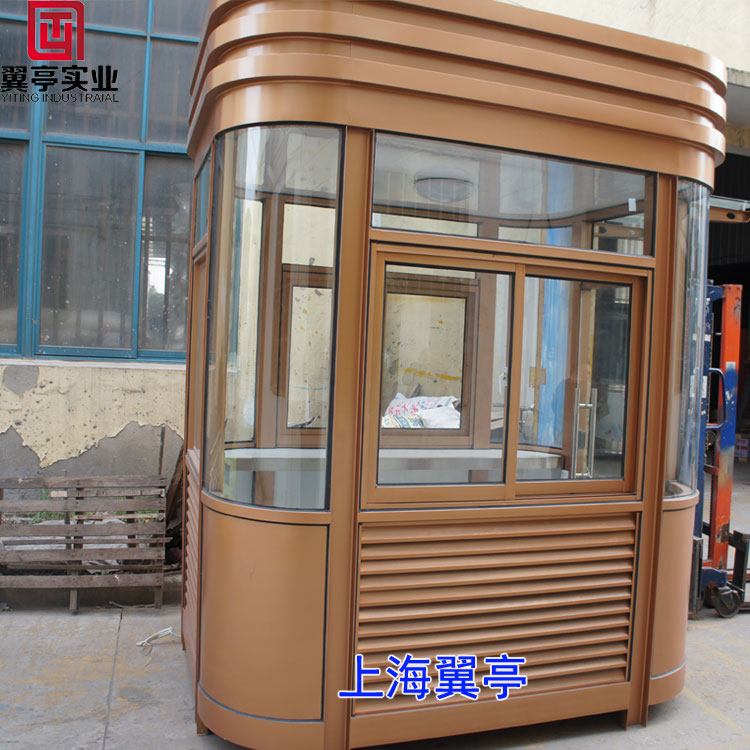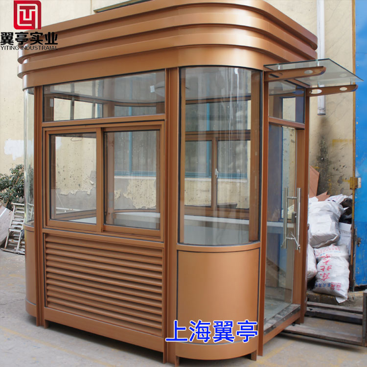 主要特點: ?YT-G03新款鋼結構崗亭、四個橢圓弧采用熱彎鋼化玻璃和鍍鋅板巧妙相結合、襯托整個鋼結構崗亭款式別致、外墻采用金棕色氟碳漆色澤明亮、使整個鋼結構崗亭成為小區一道靚麗的風景線、