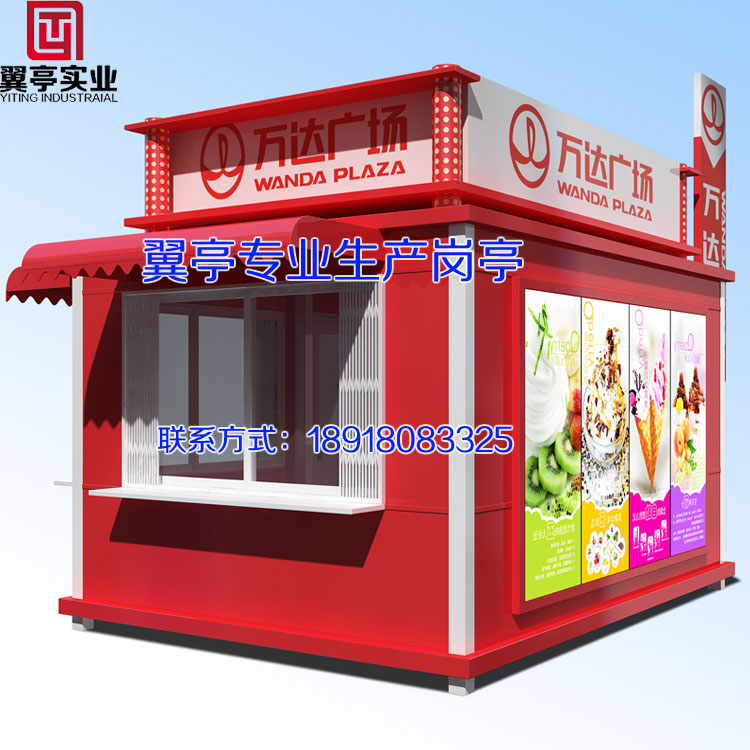 主要特點: YT-S21這款商亭是安裝在萬達廣場售貨亭、結合了多方面的功能可以售賣書報、飲料還便于游客和市民在沒有手機的情況下面也能及時和親人朋友聯系上的電話裝置、在商亭的后背裝有廣告燈箱方便展示售貨信息