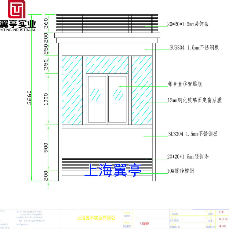 YT-B02為上海徐房地產公司定制的辦公樓保安亭、由于辦公樓位于上海市市區、要讓整個崗亭與辦公樓相互襯托、崗亭屋面我們結合了辦公樓的建筑風格采用的是兩層頂、在崗亭上面安裝空調外機的地方我們還特別設計了不銹鋼裝飾條、使整個崗亭更加的美觀和大氣不銹鋼崗亭工藝介紹: