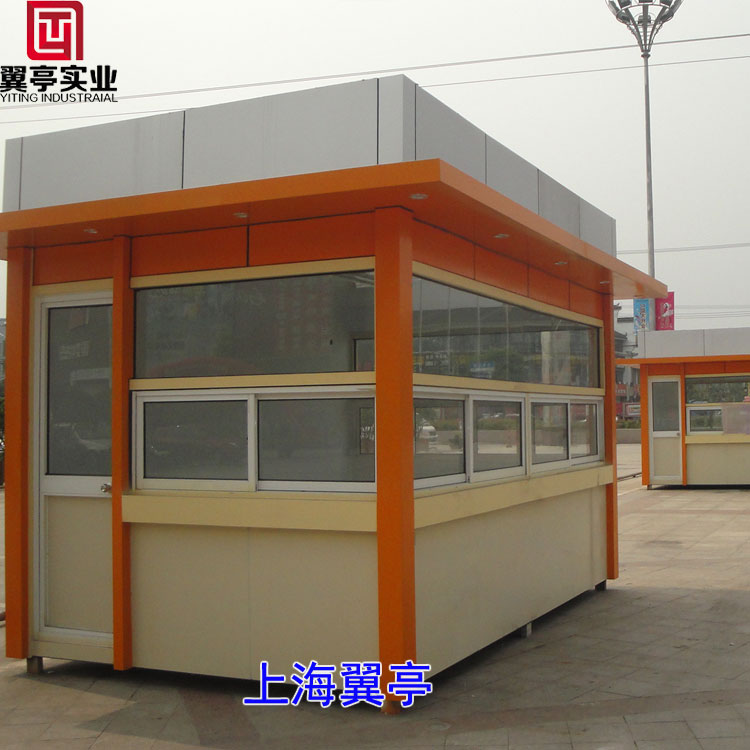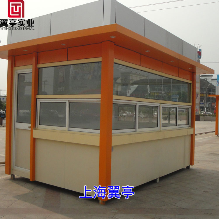主要特點: 售貨亭外形美觀、采用銀白色、橘黃色和淺黃色三種顏色相搭配、色彩的平衡、美觀大氣、售貨亭的骨架為輕型鋼結構,自重合理,既不擔心被惡劣天氣影響,也不用擔心因需要移動大費周折、售貨亭底部還可以安裝滑輪方便隨時移動
