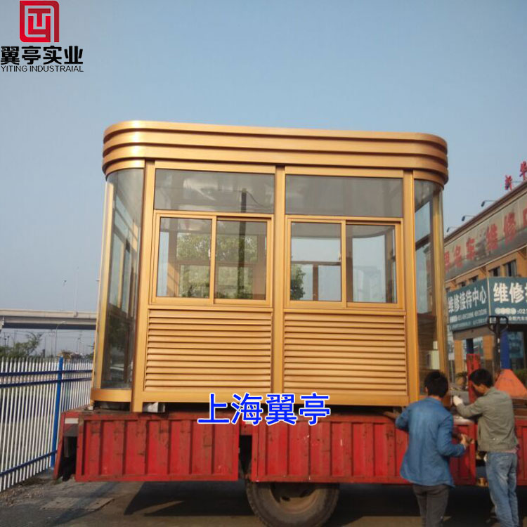 5.結構安全: 輕鋼柔性結構體系,安全可靠,滿足建筑結構設計范圍要求。金色鋼結構崗亭實物圖: