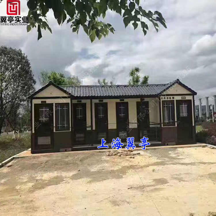 移動廁所整體設計風格美觀大氣、兩個人字形頂部設計、一邊移動廁所管理間、一邊為殘障人士洗手間、既方便又實用。材質我們也精挑細選頂部一改往日風格采用琉璃瓦,琉璃瓦美觀、防潮、