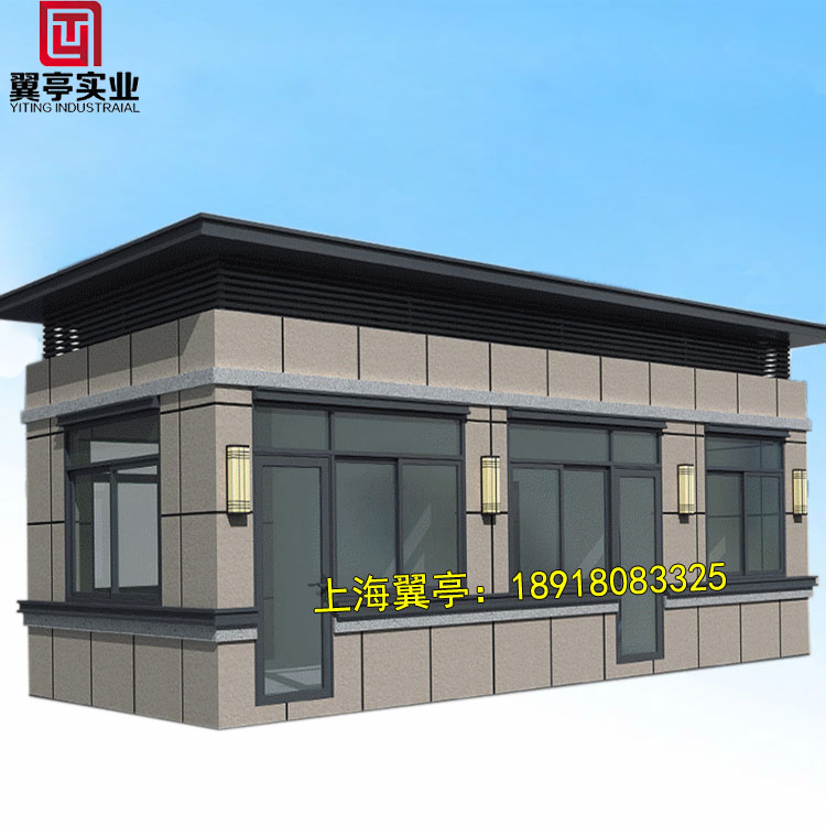 主要特點: 真石漆保安崗亭不管尺寸大小、外觀顏色以及室內配置,上海翼亭崗亭廠家都可為您量身定做!我們的YT-Z03真石漆保安崗亭尺寸就比較大,長度為8米、寬3米、占地面積為24個平方,室內還有隔間,適合平常辦公的人員比較多的情況下使用。