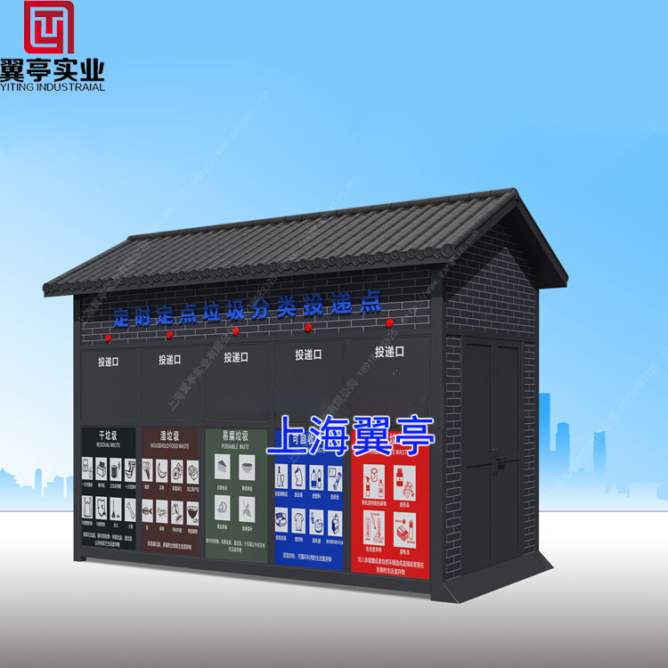產品介紹:需要垃圾房的地方越來越多、垃圾房的款式也越來越多,可以給需要購買垃圾房的朋友們提供更多的款式選擇,今天上海翼亭垃圾房廠家給大家推薦的是一款深灰色、設置有5個垃圾投放窗口的中等尺寸的垃圾房,這樣的垃圾房不管是安裝在小區、鄉村都是很美觀的