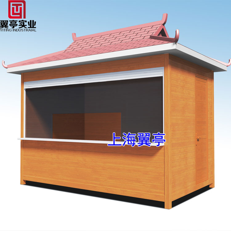7.翼亭YT-S09防腐木售貨亭特色在于整個頂部采用古典建筑風格、更顯古香古色的特色