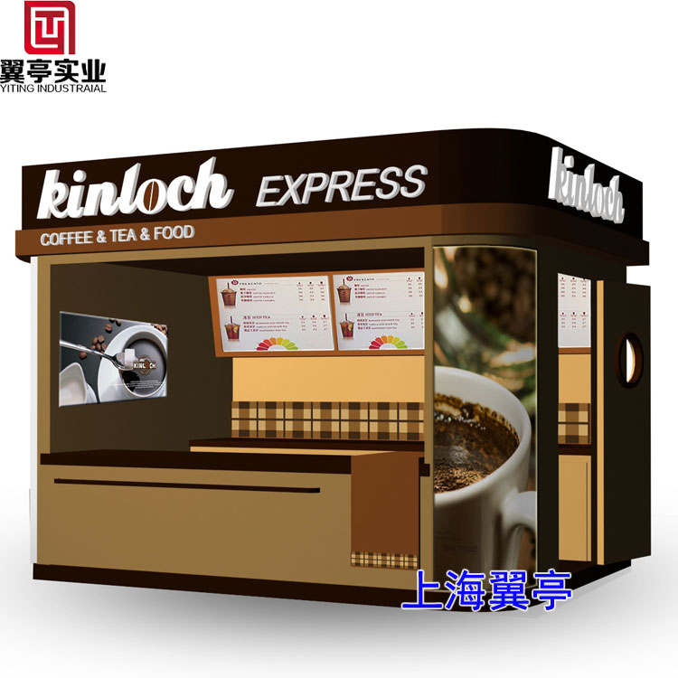 主要特點: 隨著售貨亭在大街小巷的掀起用途也越來越廣泛、像零食售、小吃、奶茶售賣、咖啡售賣亭、YT-S25售貨亭就是為咖啡售賣而定制整個售貨亭以咖啡色為主、售貨亭一側采用橢圓弧的結構設計、方便粘貼產品信息